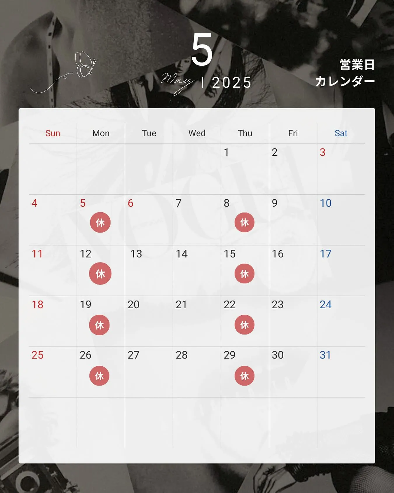 5月の営業日ご案内📣